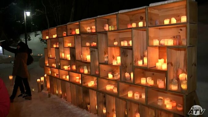 さらに会場には市内の小学校3校の児童による手作りキャンドルが並んでいます。その数400個!冬の遊びをテーマに絵が書かれていましてかまくらで遊んでいたりそりで遊んだりする様子が描かれています。どれも可愛らしいです。