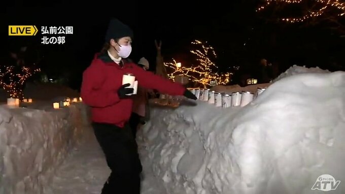 弘前城雪燈籠まつりは園内の左側通行、飲食は指定エリア限定など様々な感染対策が呼びかけられていて、2月12日までの開催です。