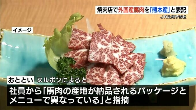 JR九州の子会社は、運営する焼肉店で外国産の馬刺しを「熊本産」と表記して提供していたことを明らかにしました。