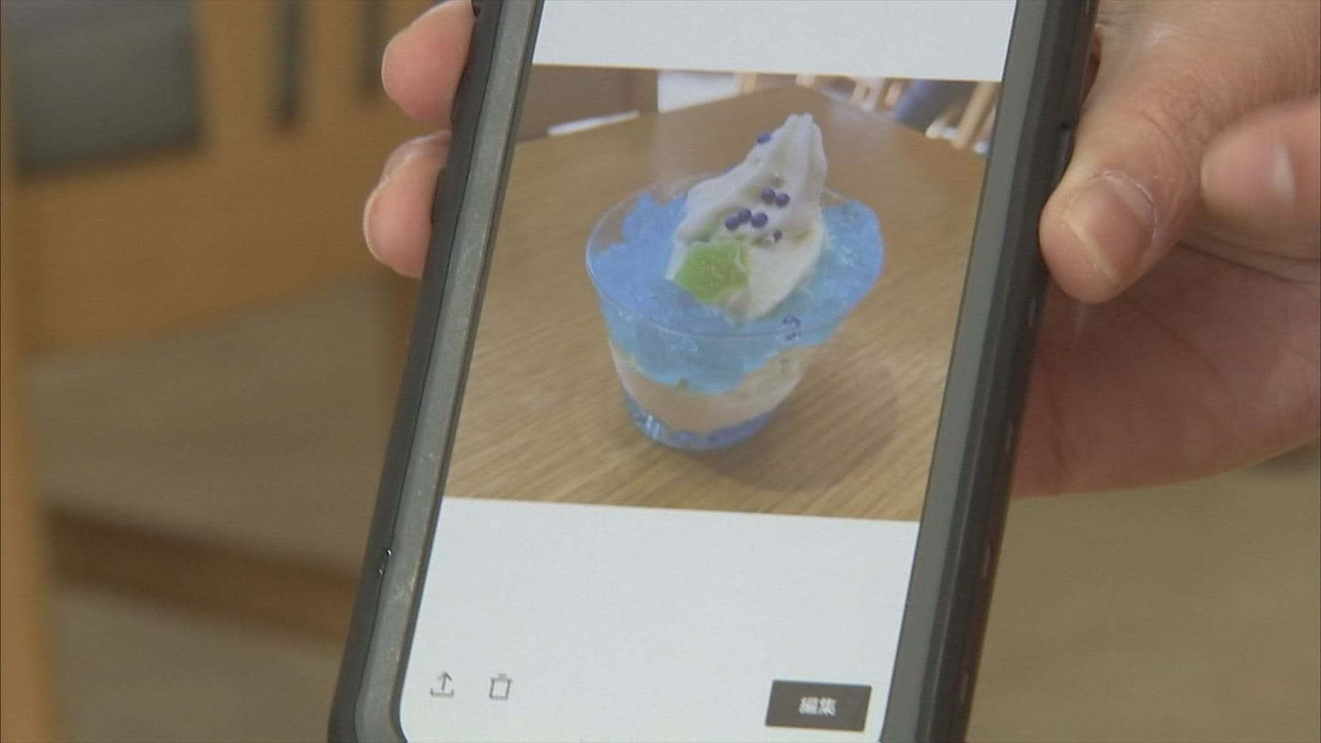 「トロッコ列車のストライプみたいな感じで、下が(青い)ゼリーでソフトを入れてまたゼリー。もう一回上にゼリーをかける。だからカップがもうちょっと大きくなるんでしょ。インスタ映えしそうだね。」