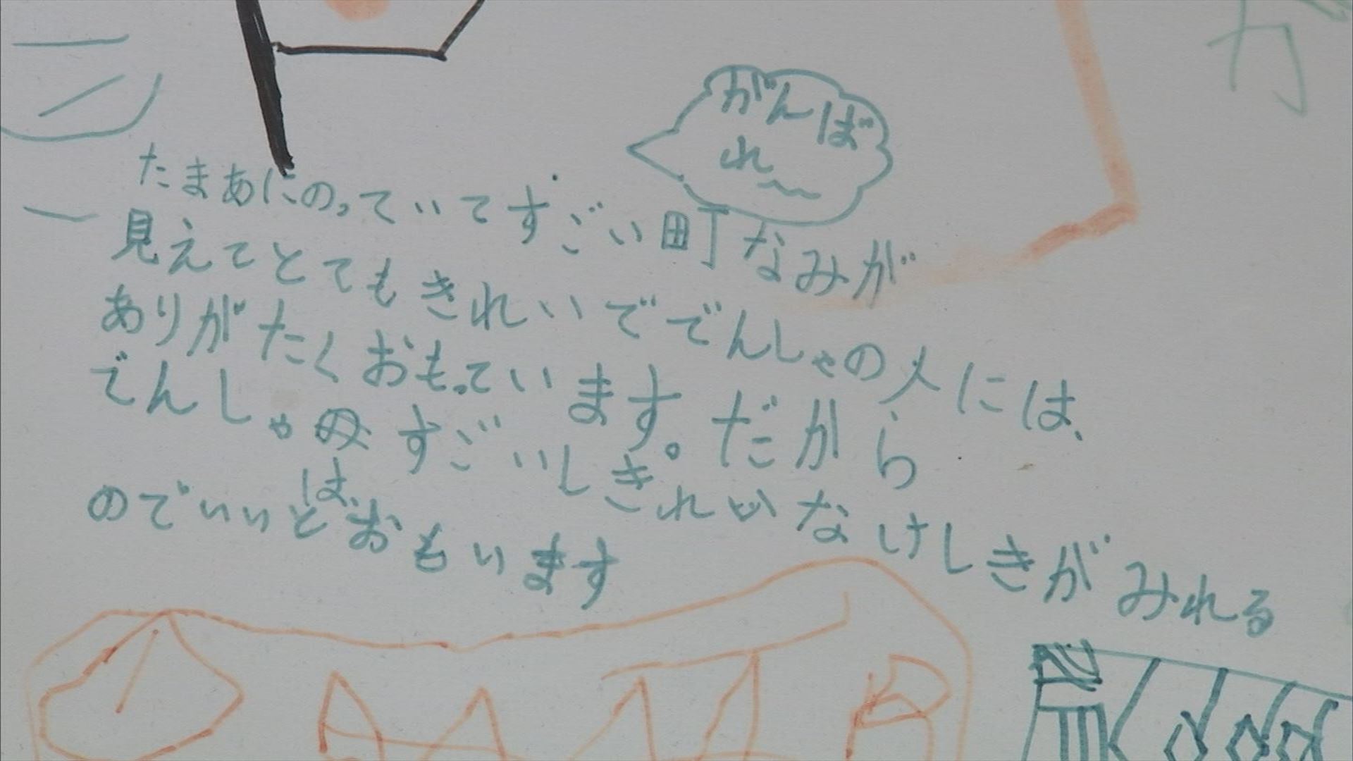 「これは地元の幼稚園さんと小学生さんに描いて頂いた、こんな列車が走ってたら良いなっていう絵を描いて頂きました。店内に貼って、ちょっとおろち号のラストイヤーを盛り上げようかなと思ってます。」