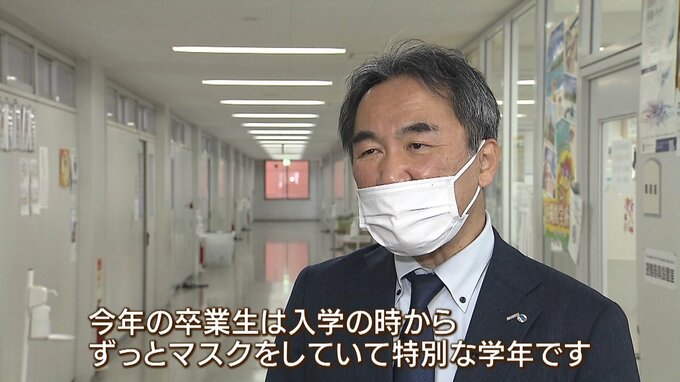 「今年の卒業生は入学の時からずっとマスクをしていて特別な学年です。3年間ずっとコロナ禍で過ごしてきたということもあります。もちろんできることであればマスクなしで素顔で参加してもらいたいんですけども、現時点ではすでに(卒業式に参列する)ご家庭にもマスク着用をお願いしている次第です。外してくださいと言っても、感染について不安になる子もいれば、マスクを外して素顔を見せることにも不安になる子もいるということで、なかなか『マスク外していいですよ』と言うのはちょっと難しいなと思っております」