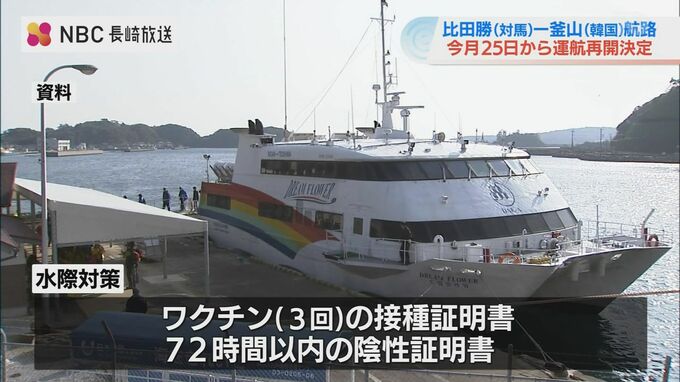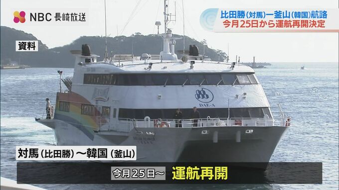 新型コロナの影響などで運休している対馬と韓国・釜山の国際航路について対馬市は今月25日から比田勝ー釜山間で運航を再開すると発表しました。