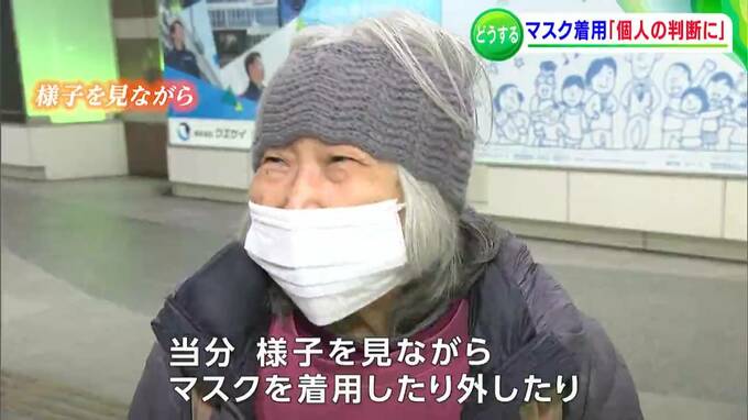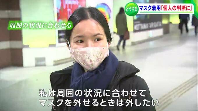 (女性)「子どもはできるだけマスクなしの生活をさせてあげたい。私は周囲の状況に合わせてマスクを外せるときには外したい」