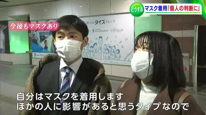 (男性)「自分はマスクを着用しますね。他人に影響があると思っちゃうタイプなので、他人のために着用しようかと思います」