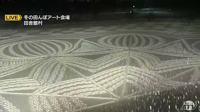 青森県田舎館村で始まった「冬の田んぼアート」です。3年ぶりに真っ白な雪のキャンバスに「和」をテーマにした図柄が浮かび上がりました。田舎館村の道の駅いなかだて「弥生の里」では冬の田んぼアートが3年ぶりに…
