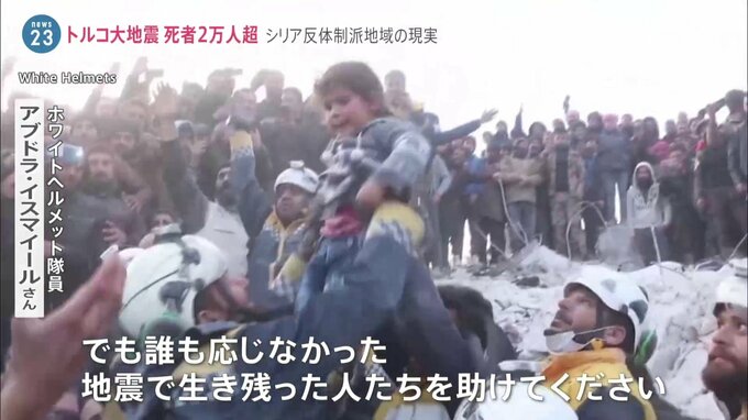トルコとシリアの大地震の死者は2万2000人を超えました。中でも支援が行き届いていないのがシリアの反体制派の支配地域です。その現場で救助にあたる民間防衛隊「ホワイトヘルメット」の隊員が、JNNの取材に「一刻…