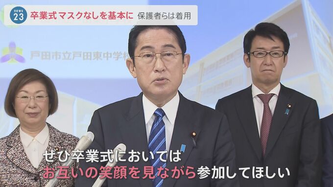 「ことし卒業式をむかえる子どもさんたちは、この3年間ずっとマスクをつけて過ごしてこられましたが、ぜひ卒業式においては、お互いの笑顔を見ながら参加してほしいと」