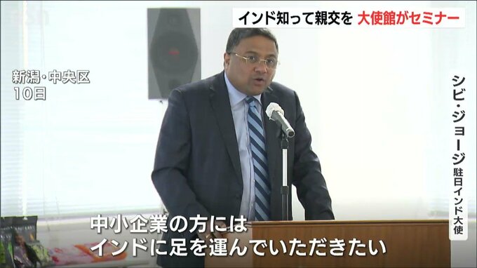 インドの文化やインドでのビジネスチャンスを県内の企業に知ってもらい、親交を深めようと、インド大使館が新潟市でセミナーを開きました。【シビ・ジョージ駐日インド大使】「中小企業の方にはインドに足を運んで…