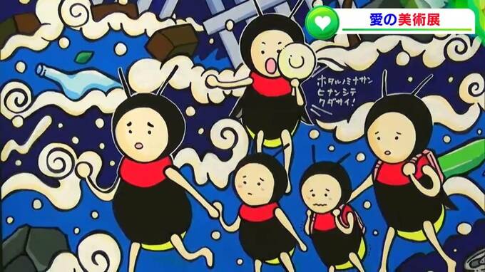 美しい里山の景色や、ホタルの生息する環境を守ろうと呼びかけるイラストなど、さまざまな「愛」のかたちを絵画で表現しています。