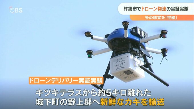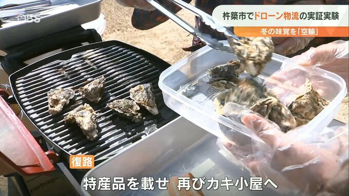 この取り組みはドローンを使った新たな観光サービスを創出しようと、大分県が民間企業に委託して実施され、12日まで2日間、杵築市で運送実験が行われました。実験では守江湾を臨むキツキテラスからおよそ5キロ離れた城下町の野上邸へバーベキューセットを輸送、観光客の元へ新鮮なカキが届けられました。