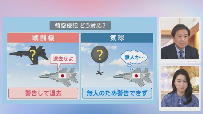 一方で日本の自衛隊は戦闘機が侵入した場合には航空自衛隊の飛行機が相手に警告をして「退去しろ」とか「強制着陸しろ」とか警告するマニュアルがあるんですけど、気球の場合は無人ですから警告はできないので、新しいマニュアル的なものは必要でしょうね。