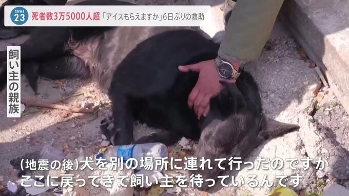 「(地震の後)犬を別の場所に連れて行ったのですが、ここに戻ってきて飼い主を待っているんです。飼い主はまだがれきの中にいます」
