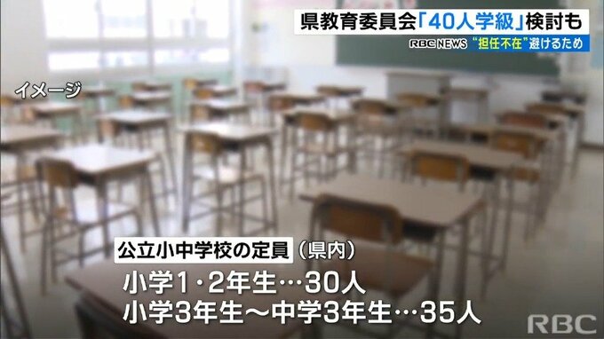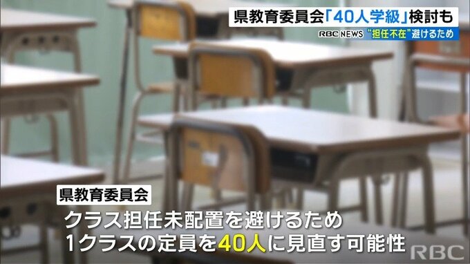 しかし、一部の小中学校ではクラス担任を配置できないなど教員不足が深刻な問題となっていることから、1クラスの定員を40人に増員する形で見直す可能性があるということです。