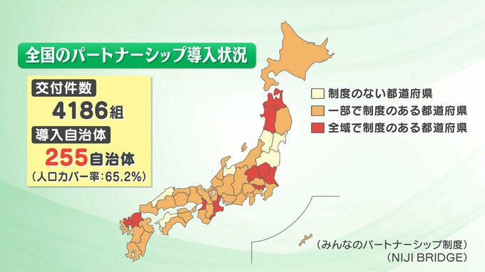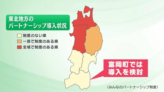 こちらは、同性カップルに家族として一定の権利を認める「パートナーシップ制度」の各自治体の導入率です。日本全体だと65.2%の自治体が導入しているんですが、東北だけで見ると、福島を含めた南東北ではどこも取り入れていません。