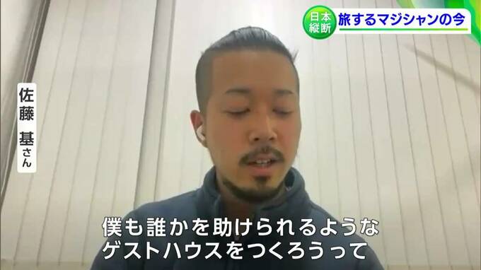 (着物マジシャン 佐藤基さん)「だいぶ助けられてきた旅だったので、僕も誰かを助けられるようなゲストハウスをつくろうって」