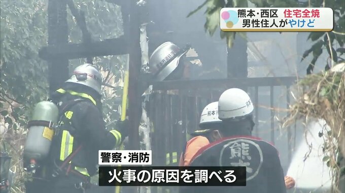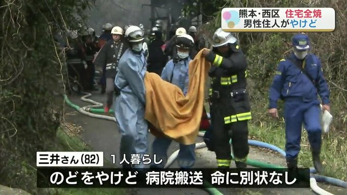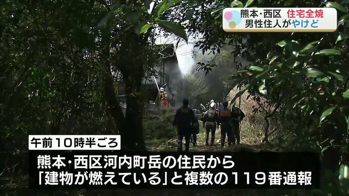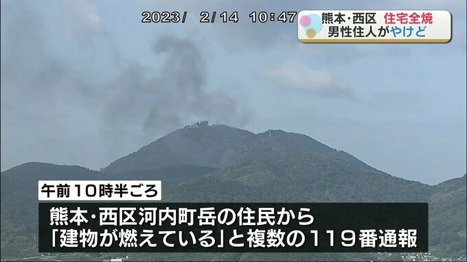 2月14日午前、熊本市西区の住宅から火が出てこの家が全焼し、住人の80代男性がやけどをして病院に運ばれました。