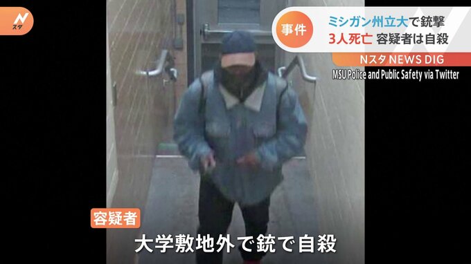 アメリカ中西部にあるミシガン州立大学で銃撃事件が起き、3人が死亡、5人が重傷です。逃走していた容疑者の男は自殺しました。地元警察によりますと、13日の午後8時すぎ、ミシガン州立大学に銃を持った男が侵入、…