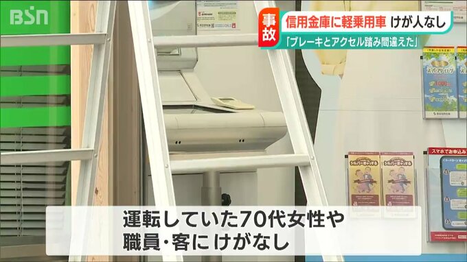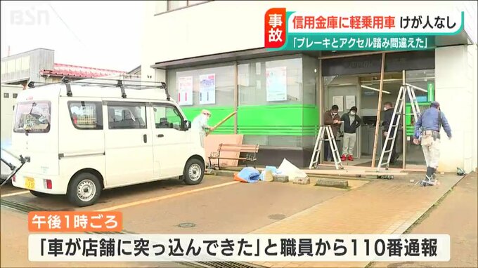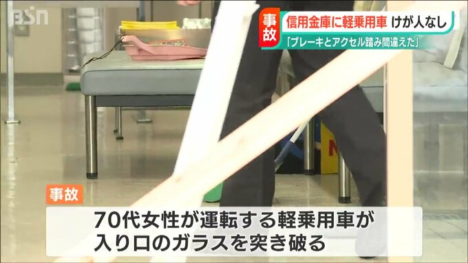 長岡市で14日午後、70代の女性が運転する軽乗用車が信用金庫の入口のガラスを突き破り、店内に突っ込む事故がありました。けが人はいませんでした。