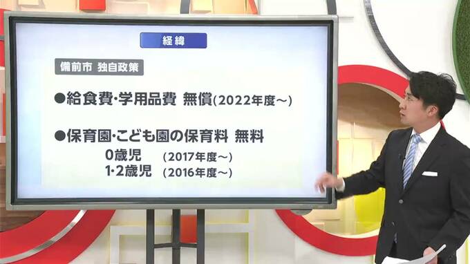 備前市では子育ての負担を減らそうと、2022年度から「小中学生の給食費や学用品の費用」、また「保育園やこども園に通う園児の保育料を無償化」していました。