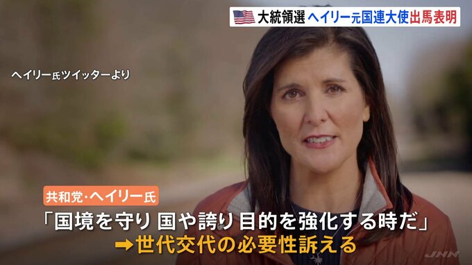 来年のアメリカ大統領選挙に向け、共和党のニッキー・ヘイリー元国連大使が出馬を表明しました。共和党の候補者指名争いでは、すでに出馬表明しているトランプ前大統領に続く2人目の有力候補です。ヘイリー氏は、19…