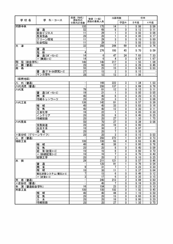 3. 【熊本県公立高校入試】 2023年 出願倍率・出願者数一覧 全日制平均倍率は「0.95倍」 合格者発表は3月6日