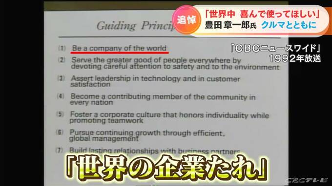 14日、心不全のため97歳で亡くなった、トヨタ自動車名誉会長の豊田章一郎(とよだしょういちろう)さん。トヨタを世界企業に押し上げ、18年前の愛・地球博でも尽力しました。CBCテレビに残る映像からその功績を振り返ります。