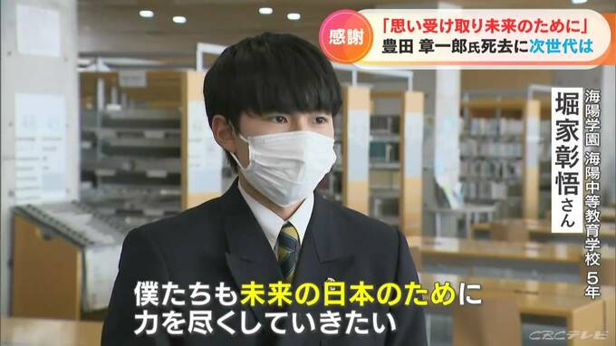 (海陽学園海陽中等教育学校5年 堀家彰悟さん)「日本を引っ張ってきたリーダーが亡くなったということで、その人の思いなどを受け取って、僕たちも未来の日本のために力を尽くしていきたい」