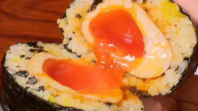 福岡県に3店舗、長崎県に1店舗のスーパーを展開するダイキョープラザ。おにぎり部門で最優秀賞に選ばれた商品は、薬味たっぷりの甘辛ダレに漬け込んだ韓国風の半熟たまごを、まるごと1個入れています。