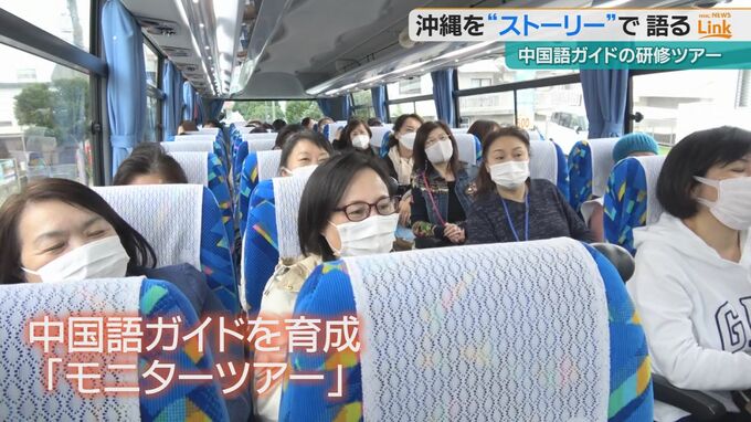 中国語が飛び交う観光バス。今月4日、中国語を話すおよそ30人が乗り込んだこのバスが、浦添市・那覇市内を回りました。普通の団体ツアーのように見えますが、乗っている人の21人のうちガイド役は10人もいます。