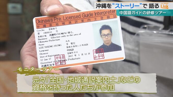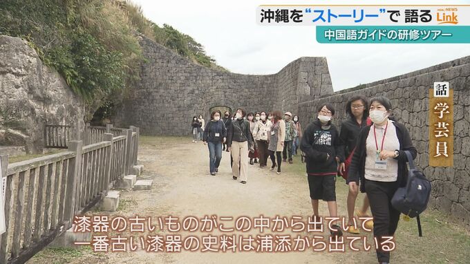 ガイドとして参加しているのは、学生や企業経営者など様々ですが、元々『通訳案内士』などの資格を持った人たち。しかし今回、改めて研修を受けているのには理由があります。ガイドたちは、沖縄の歴史や風土を学ぶだけでなく、見て回る工芸品や歴史遺産を関連付け、ストーリーとして語ることを目指して学びます。