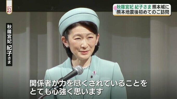 熊本に滞在中の秋篠宮妃 紀子(あきしののみやひ きこ)さまは、きょう2月15日、結核予防全国大会に出席された後、熊本城などを視察されました。