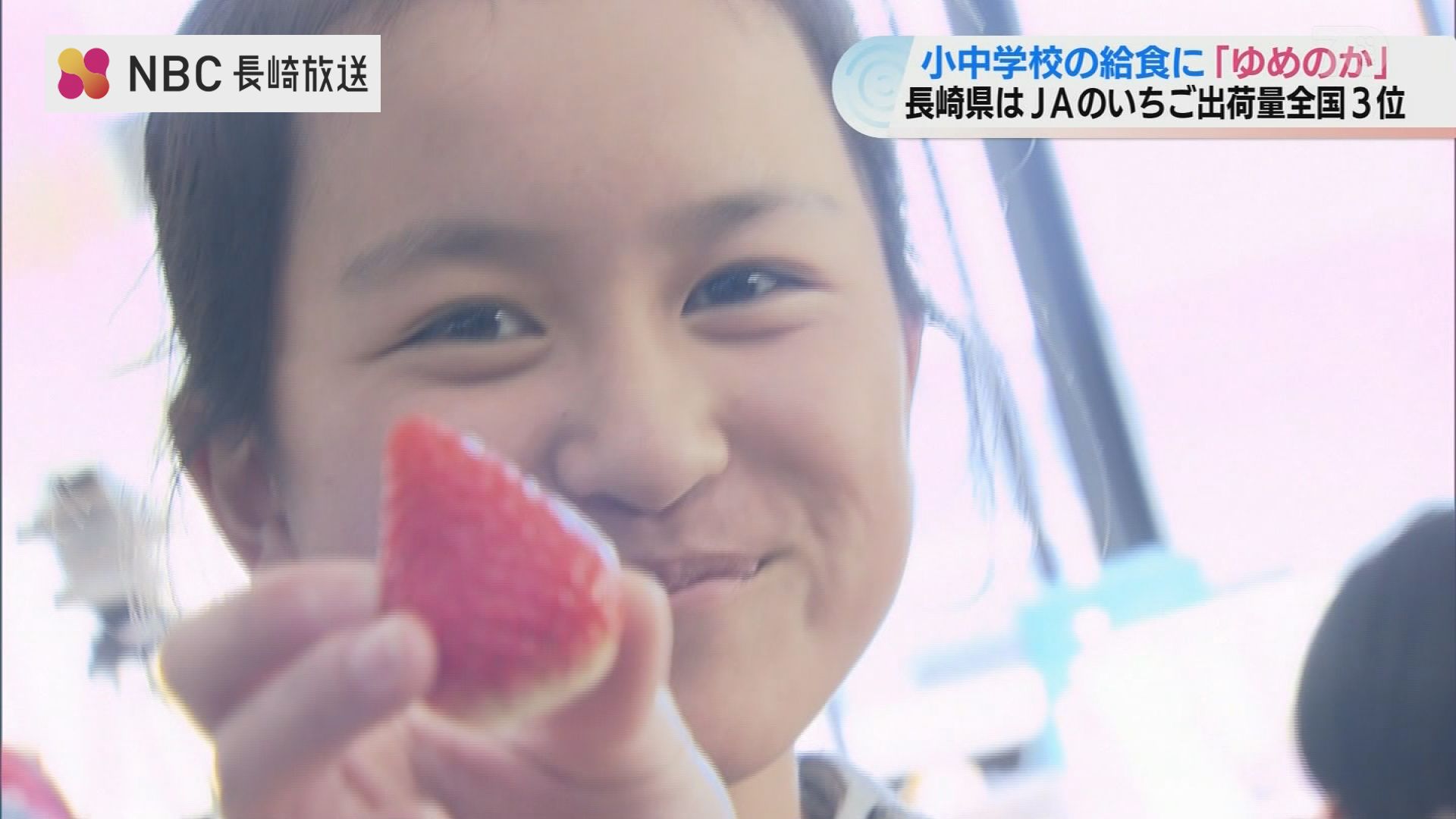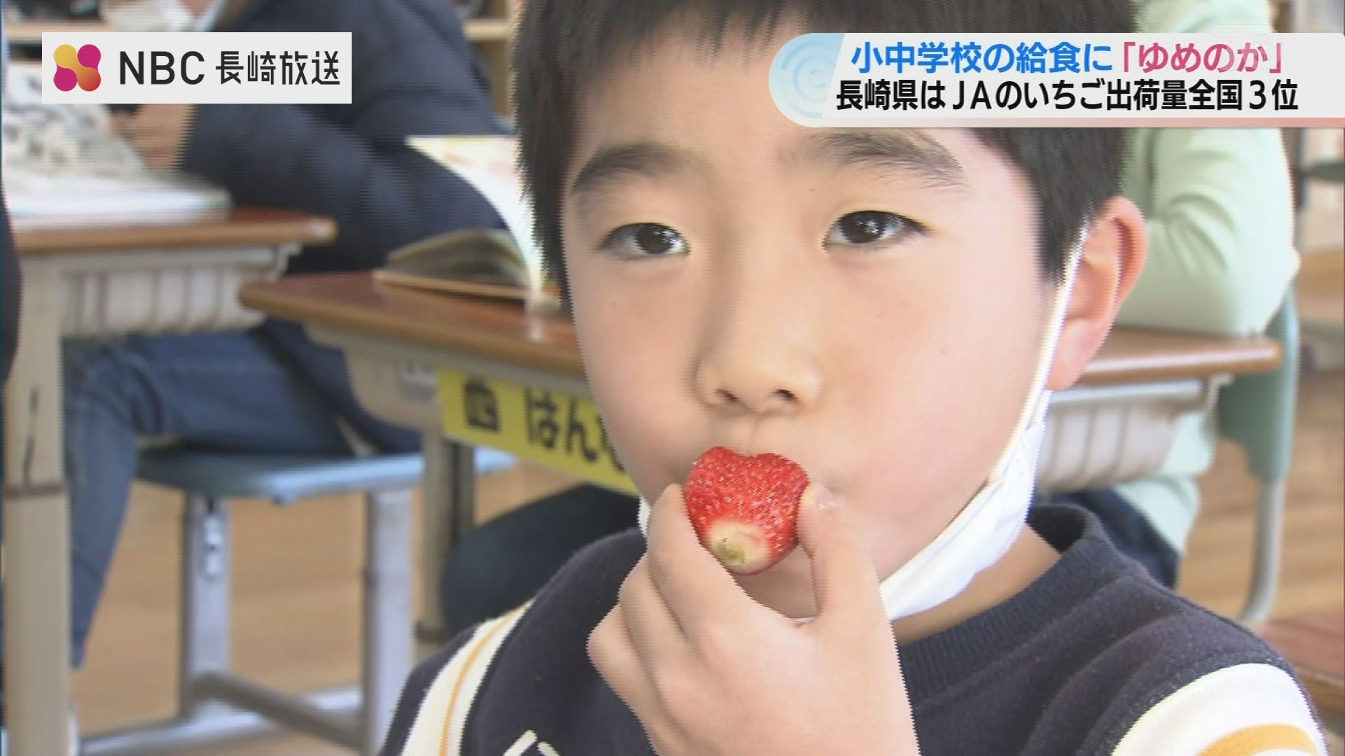 長崎県内のいちごのおいしさを知ってもらおうと、15日、小中学校の給食にいちごが登場しました。