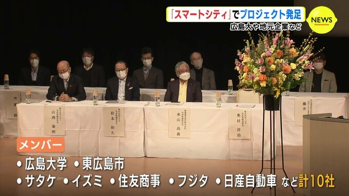 メンバーは、広島大学と東広島市に加えて、地元のサタケやイズミのほか、住友商事・フジタ・日産自動車など、さまざまな業種の10社です。