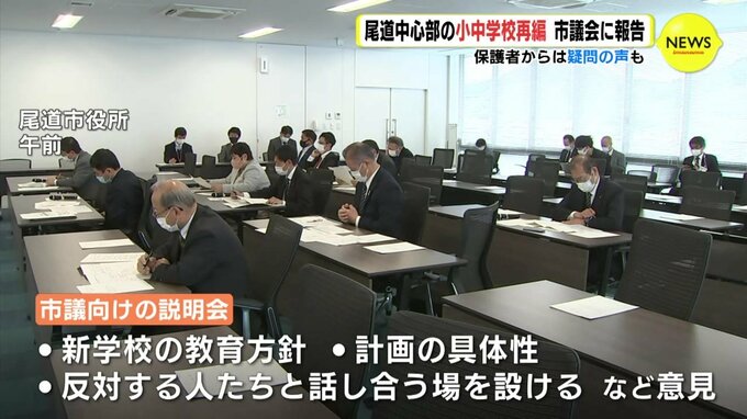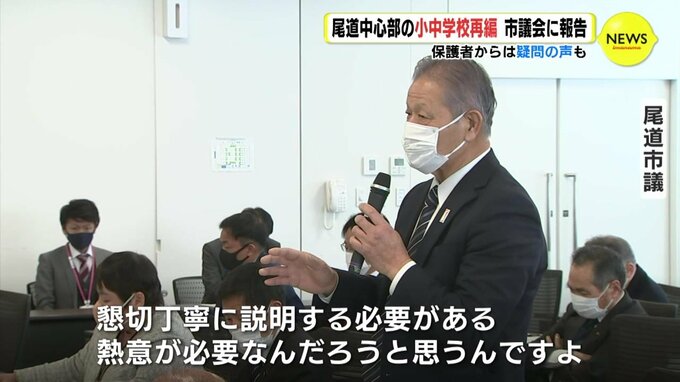 尾道市議会議員からは、新しい学校の教育方針や計画の具体性を要望する意見のほか、反対している人たちと話し合う場を求める声などが上がりました。