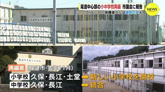 尾道市中心部の学校再編をめぐっては、数年に渡って議論が続いています。去年11月、市教委は久保・長江・土堂の3小学校を統合して新しい小学校を開校し、久保中学校と長江中学校を1つの中学校に統合する案を示しました。
