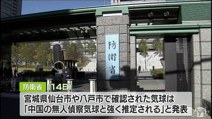 こうした中、防衛省は14日、2019年以降、宮城県仙台市や八戸市で確認された気球について、中国の無人偵察気球と強く推定されると発表しました。