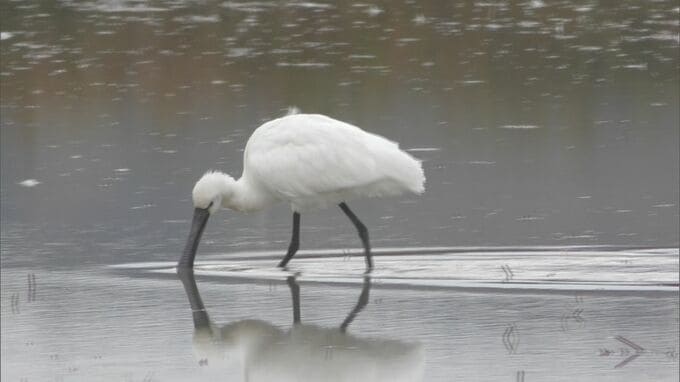 こちらは2019年11月に富山にやってきた「ヘラサギ」。“しゃもじ”のような形をした長いくちばし、目からくちばしにかけて走る細い線が特徴です。