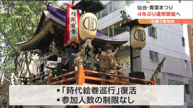 杜の都の初夏の風物詩「仙台・青葉まつり」が4年ぶりに通常規模で開催されることになりました。仙台・青葉まつりは、新型コロナの影響でおととしまでの2年間は中止、去年は会場の数を半分以下にし、山鉾の数も減ら…