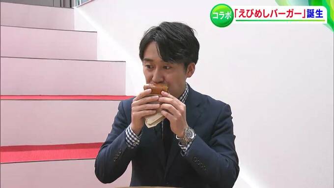 (坂井亮太キャスター)「いただきます!しっとりとしたバンズの中に、干しエビが練り込まれているので、エビの風味がバンズからも感じられます。カレー風味のキャベツとえびめし、そしてバンズとの相性抜群です。これはクセになります。止まらないですね」