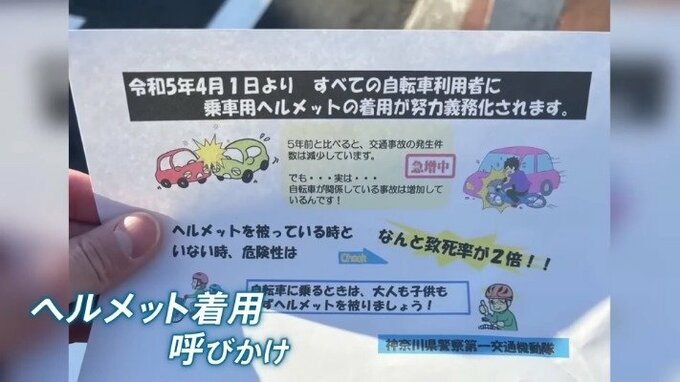 「4月からということではなく、今すぐにでもヘルメットを購入して、自転車の走行の際には装着するようにして欲しい」