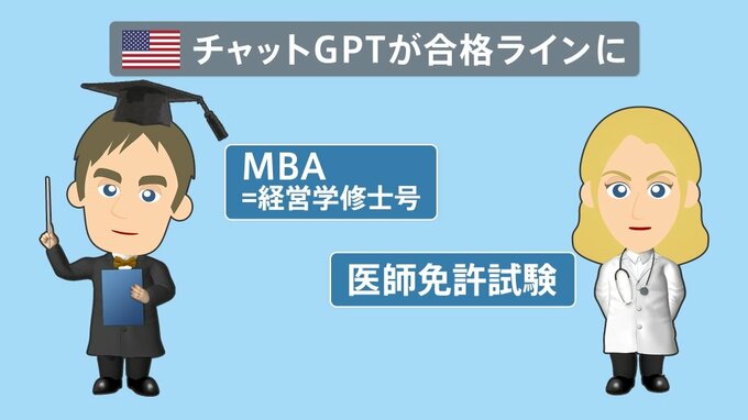 またアメリカではチャットGPTがMBA経営学修士号であったり、医師免許の資格試験で合格ラインに到達していると。