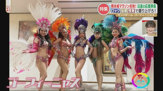 サンバダンサーのマサシさんがプロデュースする熊本の女性によるサンバダンスチーム「ゴーフィーニャス」情熱的なサンバで、ランナーと観客を笑顔にしたいと参加を決めました。