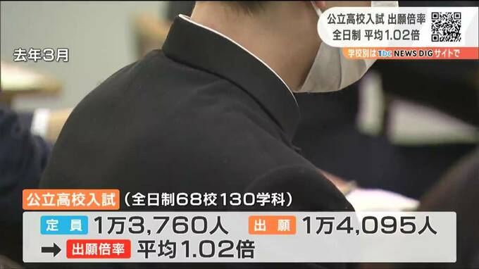 3月6日に行われる公立高校入試の出願倍率が17日発表されました。全日制の出願倍率は平均で▼1.02倍で、最も高かったのは県工業高校情報技術科の▼2.13倍でした。県教育委員会の発表では、公立高校入試は、全日制の6…