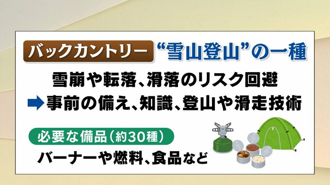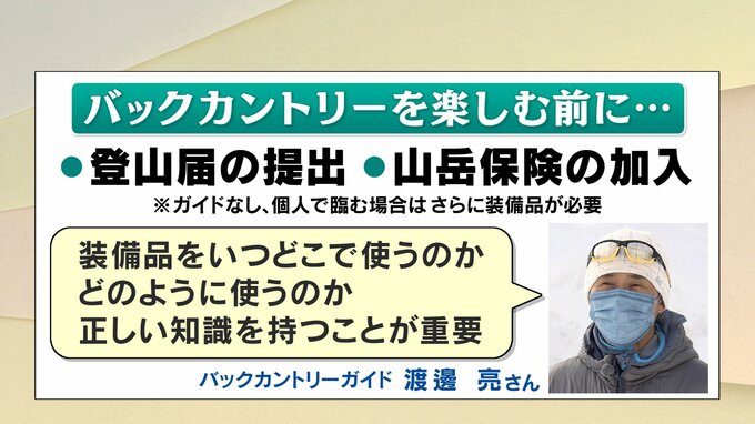 ガイドを務める渡邊さんはバックカントリーは、「雪山登山の一種」と指摘していました。