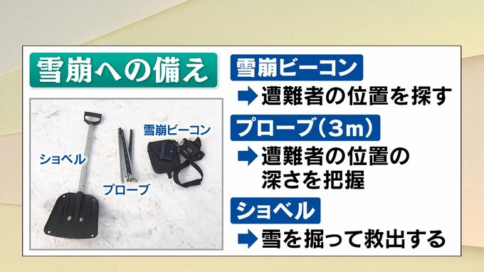 大前提として、雪崩や転落、滑落といった事故に遭わないために、事前の備えや知識、それに登山などの技術が必要だといいます。