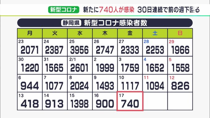 静岡県内では2月17日、新たに740人が新型コロナウイルスに感染したことが分かりました。30日連続で前の週を下回っています。自治体別の感染者は、浜松市で146人、静岡市で152人、そのほかの市と町で442人となって…