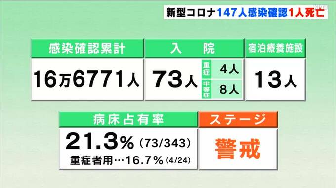 新型コロナについて高知県内で新たに147人の感染が確認されました。自宅で療養していた80代男性の死亡も報告されています。感染が確認されたのは10歳未満から90歳以上までの147人です。年代別では70歳以上が25人と…