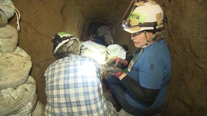 初日の19日は、アメリカやポーランドの出身者のほか、沖縄戦当時、壕内で亡くなった可能性がある叔父を探している人などおよそ50人が参加し、普段は公開されていない区間で発掘作業を行いました。