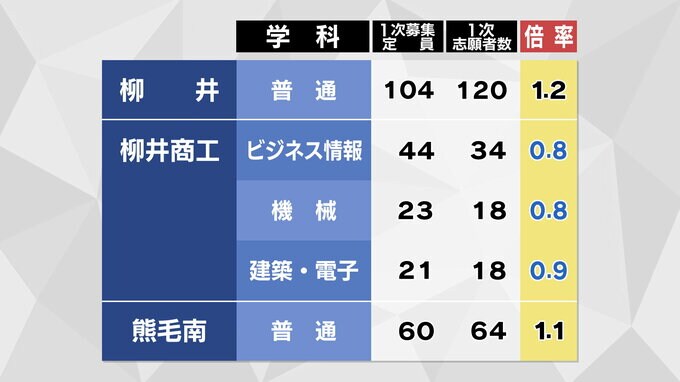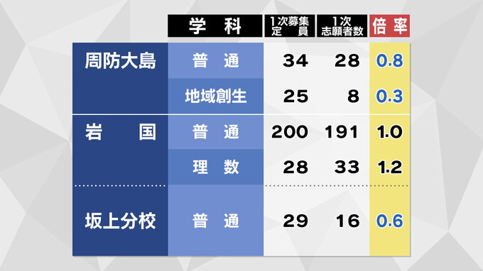 山口県内の公立高校入試の出願が締め切られました。全日制の志願倍率は、去年より0.01ポイント下がって1.07倍となりました。